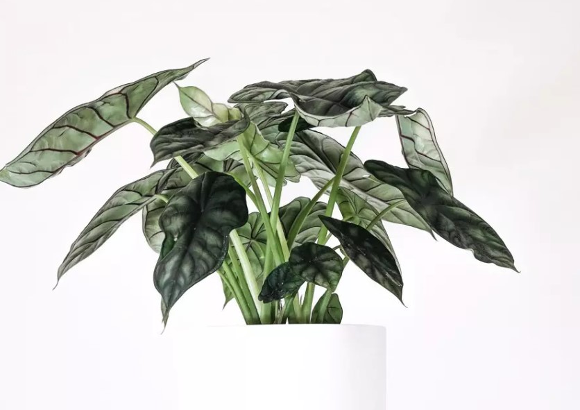 - ‘Gümüş Ejderha’ Alocasia: İlginç dokuya ve yaprakların gümüş-yeşil rengine sahiptir.