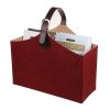 Klasik çizgilere sahip bu şık gazetelik, bordo renkli kumaş kaplama ve kahverengi deri kulpuyla dikkat çekiyor. Dikdörtgen formundaki tasarım, klasik ev dekorasyonuna uyumlu bir tarzı yansıtıyor.
