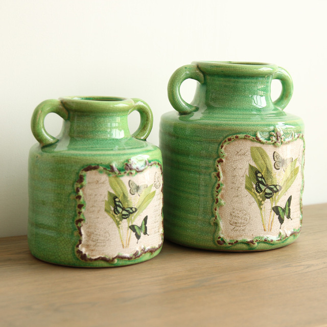 Kelebek temalı bu seramik vazolar, vintage tarzı ile dikkat çeken dekoratif aksesuarlardır. İki farklı boyutta tasarlanan vazolar, yeşilin huzur veren tonlarıyla kaplanmıştır. Ürünlerin yüzeyi parlak sırlı seramikten üretilmiştir.